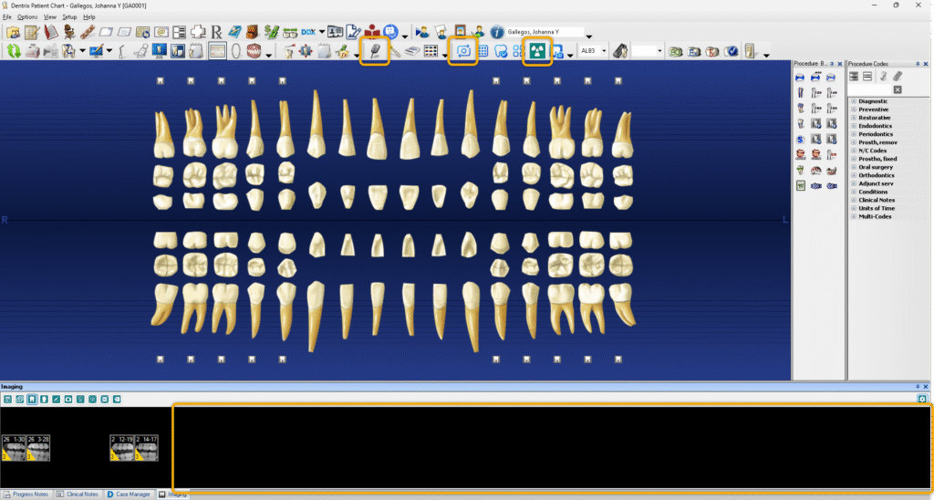 Beginning with Dentrix 26.2, the Dexis Integrator has been removed from the Chart. Instead, use the Dentrix Imaging panel to access your images.